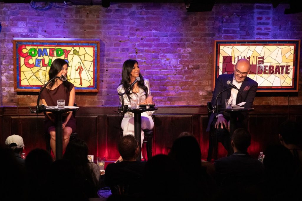 Journalist and filmmaker Nayeema Raza moderated the debate. Raza was formerly on-air executive producer of the “On with Kara Swisher” podcast and is the current host of “Smart Girl Dumb Questions.”